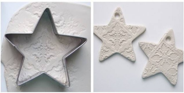Выдавливаем их полученного пласта глины сердечки, ангелочки, печеньки или оленей Санты. Аккуратно убираем излишки глины.