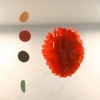 А дальше мы сотворили мухоморы из бумаги. Ярослав увидел, как красный круг трансформируется в конус, на него он приклеил белые пятнышки, получилась шляпка грибка.