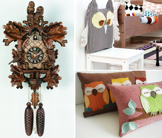Один из самых популярных декоративных трендов – образ совы. К примеру, настенные часы с совой – прекрасное дополнение к образу сказочного леса в интерьере.