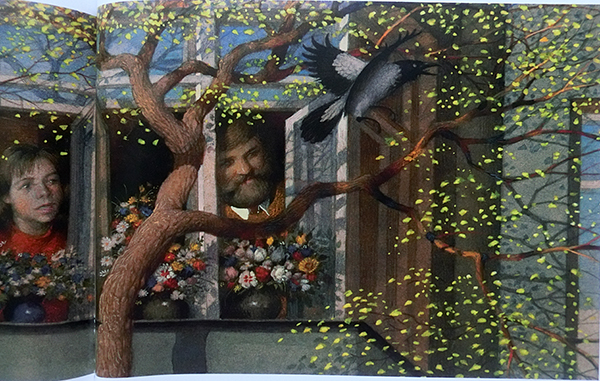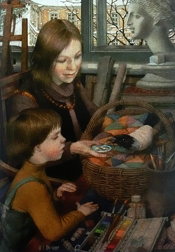 Также он иллюстрировал свой собственный очень трогательный рассказ «Марфа» – про ворону со сломанным крылом.