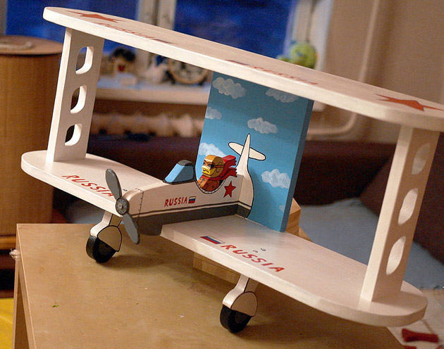 Еще одно из направлений работы «Мастерской №13» – создание наборов для творчества, позволяющих самостоятельно собрать и раскрасить полку-самолет. Все детали такого конструктора тщательно обработаны и идеально подогнаны, а в комплекте с ними идут подробная инструкция и комплект креплений – собрать свою полку самостоятельно сможет даже школьник! А разукрашенная рукой владельца комнаты, такая полка станет по-настоящему эксклюзивной деталью интерьера.