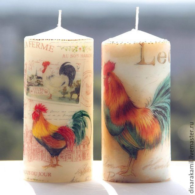 В технике декупаж можно сделать ключницу, кружку, панно с петушками, свечи к праздничному столу.