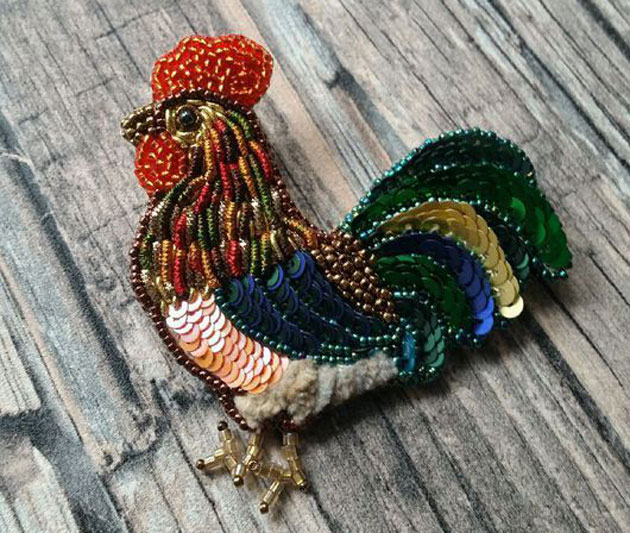 Расшитые бисером броши в виде петушков – стильное украшение, носить которое смогут и дети и их мамы.
