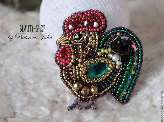Брошь из бисера “ПЕТУХ”. АВТОР: Юлия Батирова, Москва