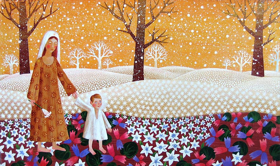 Зимние картины Ольги Кваши наполнены смысловой глубиной материнства и настоящим умиротворением, которые так редко можно встретить в современном искусстве!