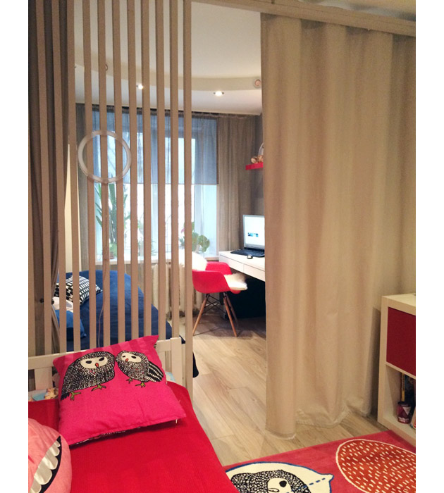 Понравилось решение о данном методе разделения комнаты на две части, нравится цвета, сразу видно где, чья половина.